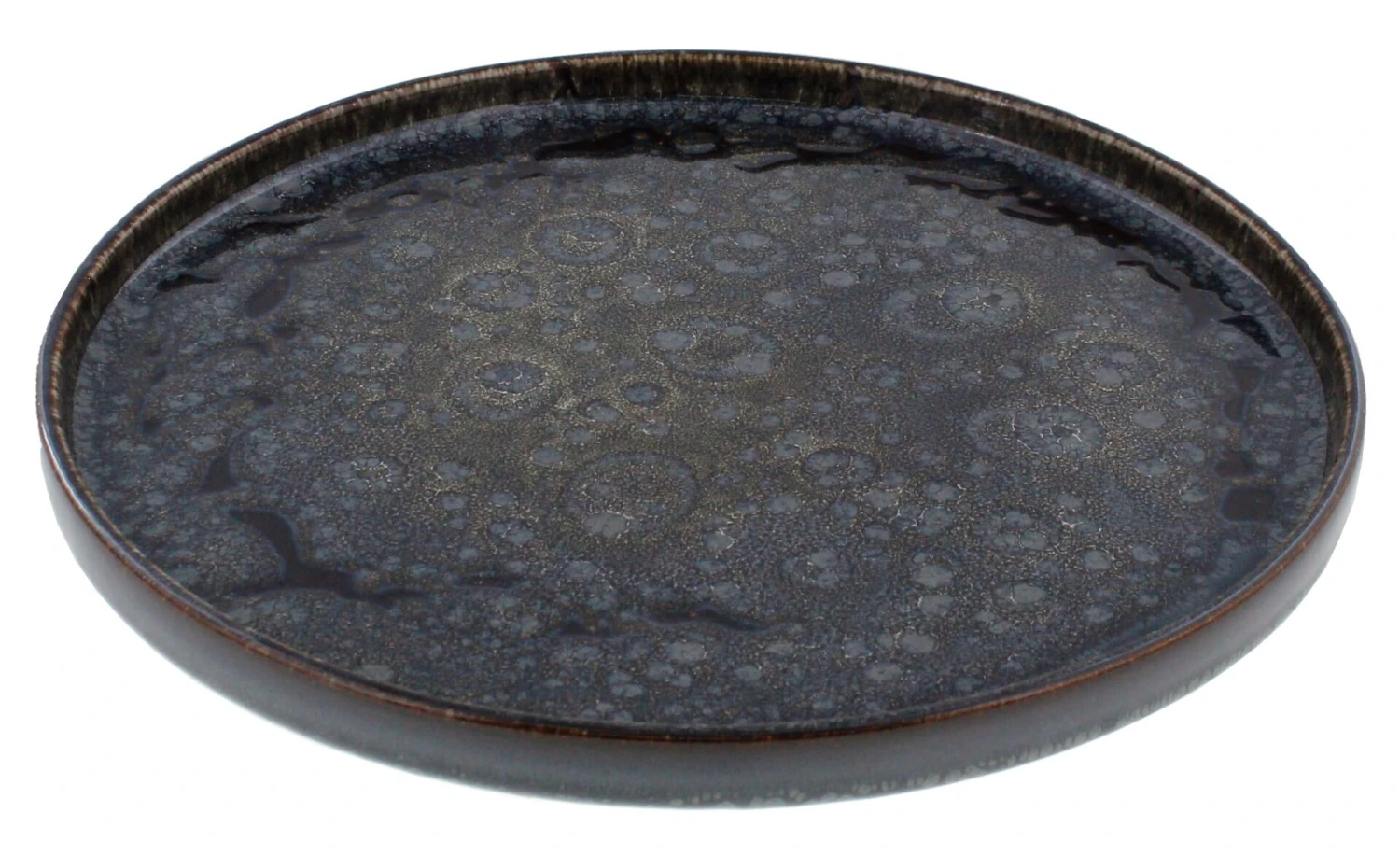 Het Oldenhof 1821 bord Angel is gemaakt van spikkelblauw, geglazuurd aardewerk. Het bord heeft een diameter van 30 cm en heeft een opstaande rand. Gebruik het bord voor het serveren van diverse gerechten.
