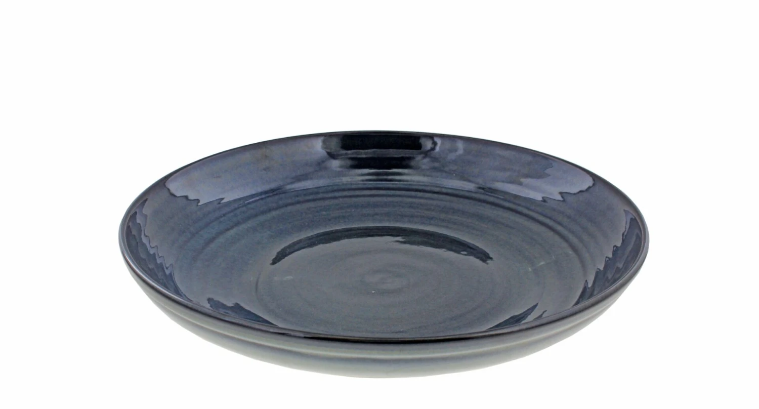 Het Oldenhof 1821 serveerbord is gemaakt van indigo blauw, geglazuurd aardewerk. Het bord heeft een diameter van 35 cm. Gebruik het bord voor het serveren van grote gerechten of hapjes.
