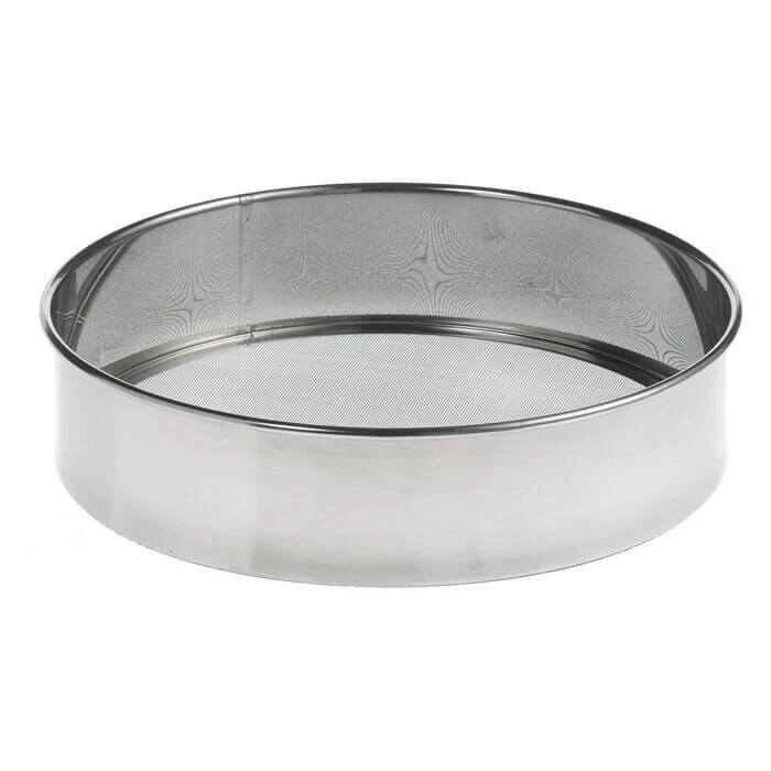 De roestvrijstalen meelzeef, of trommelzeef, van Oldenhof heeft een diameter van 20 cm. Zeef eenvoudig meel, poedersuiker en bloem. Ideaal voor professioneel gebruik.