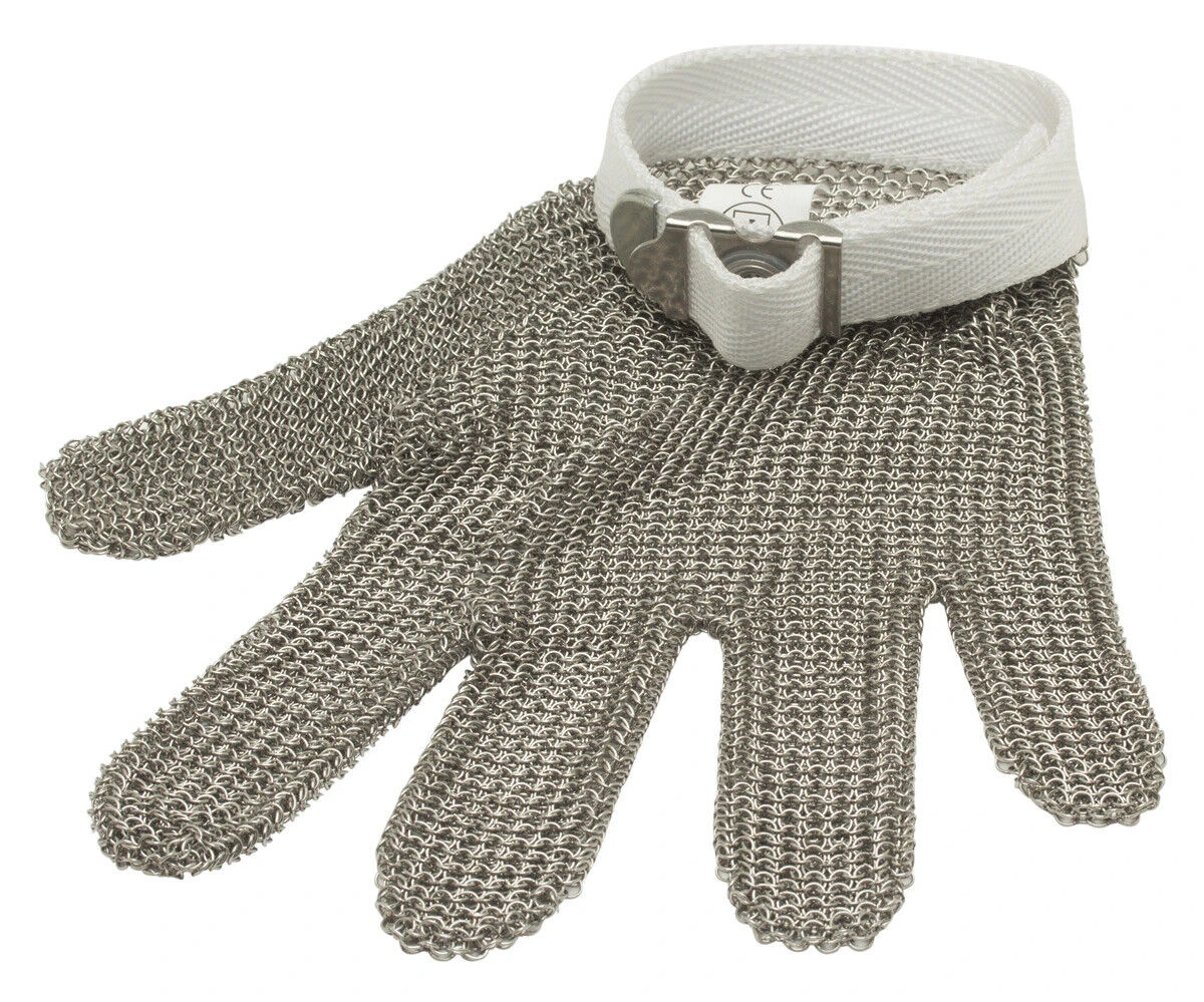 De Oldenhof oesterhandschoen S is vervaardigd uit roestvrij staal met een witte kunststof band die met een gesp strak om de pols getrokken kan worden. De handschoen biedt goede bescherming door een dicht patroon van maliën. Gebruik de handschoen tijdens het openen van oesters om uw hand te beschermen tegen scherpe oesterschelpen.