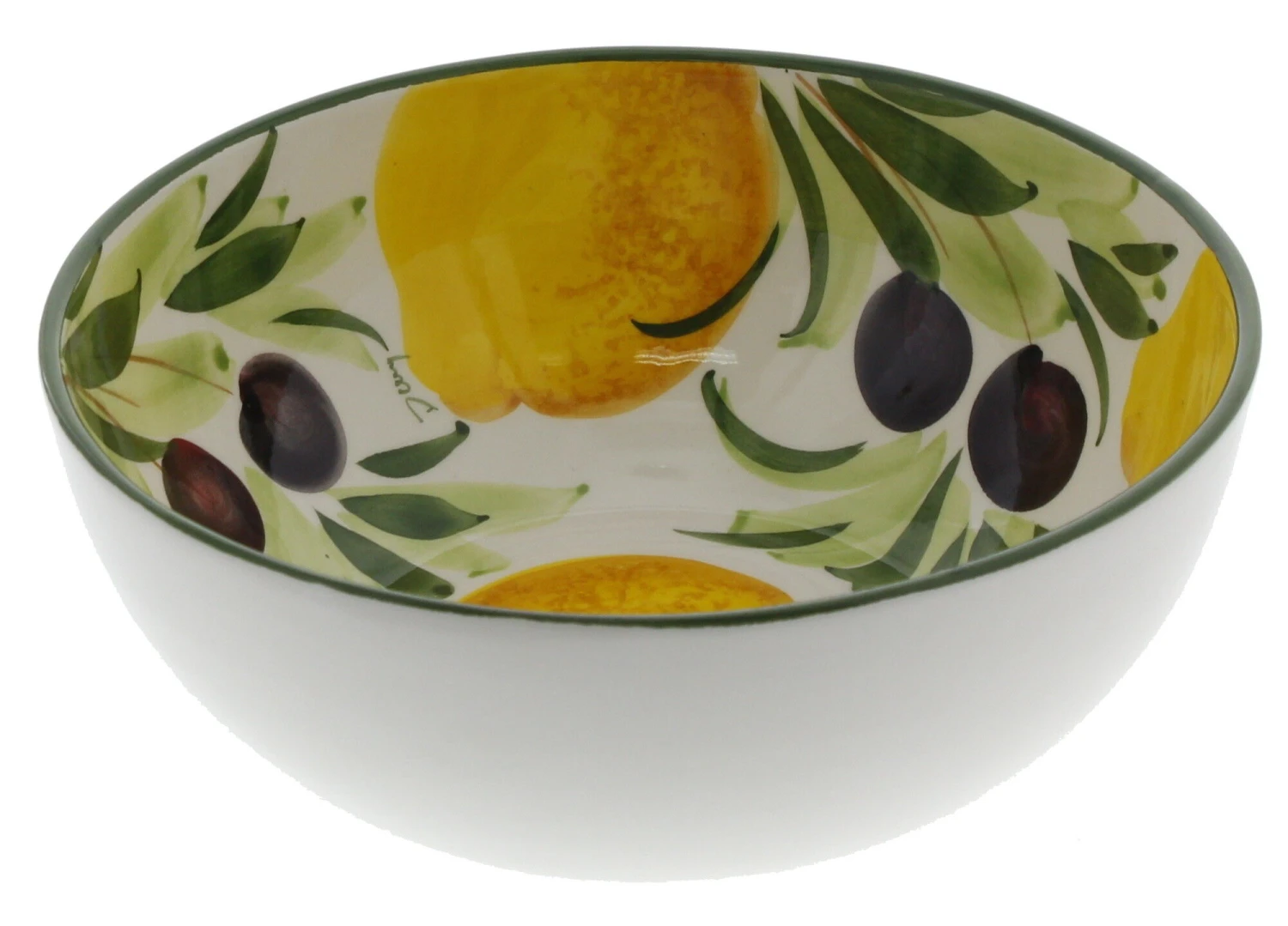 De Oldenhof ronde schaal is gemaakt van wit aardewerk en voorzien van een decoratie van citroenen en olijven.